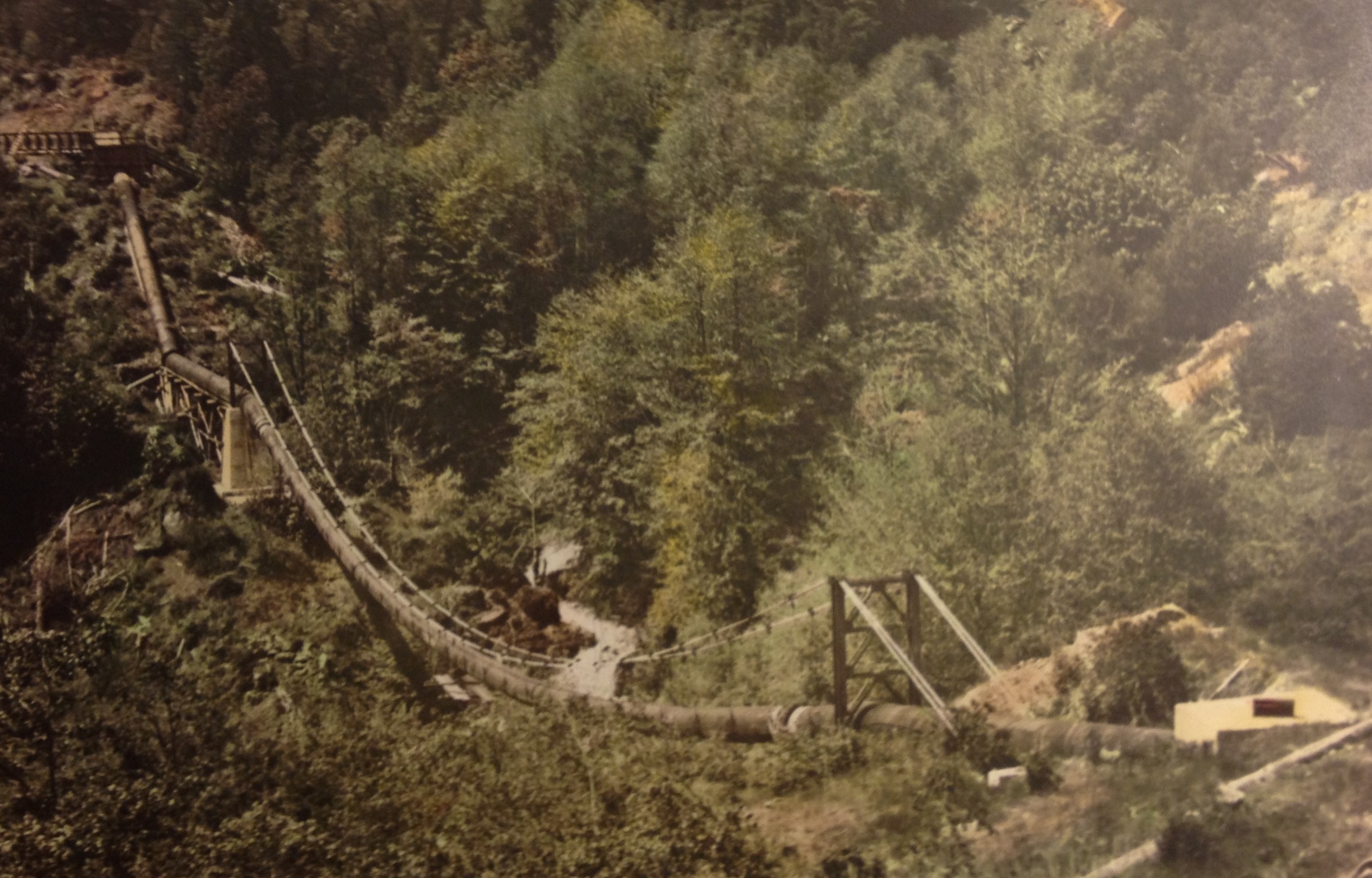 While in Albany, CA on business I stumbled upon a small book and antique store called Antiques on Solano. I purchased six photos involving hydraulic mining in California. The colorized pictures of the diversion dam and suspension bridge I subsequently created a blog call Salyer – Swanson hydraulic mine bridge and history because there was a whole story behind those photos. The photo of Spring Valley Mine with two monitors operating neatly connects to a previous blog post I did on the Cherokee and Spring Valley Mines east of Table Mountain and north of Oroville- See: Table Mountain Cherokee Hydraulic Mines.