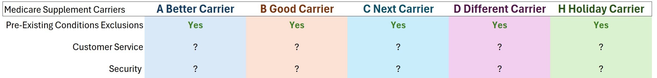 All of the Medicare Supplement will have pre-existing conditions exclusions. While Original Medicare will cover a health care service for a pre-existing condition, a Medicare Supplement carrier may not cover their portion of the bill. However, the pre-existing clause is usually waived if the applicant has had creditable health insurance prior to enrolling into Medicare and the supplement plan. Customer service and security can be subjective. I recommend talking to family and friends with a plan you are considering to learn how the carrier service is.
