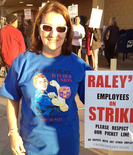 Delores posing with the Raley’s employees and members of the UFCW Local 8 before walking the picket line.