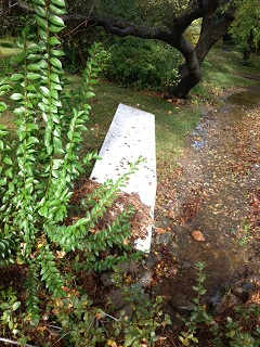 It was also in the morning of 2005, on New Years Eve, when we had a similar flooding event. Then, as now, it was an almost tropical storm that dumped heavy rains throughout our neighborhood. Back in 2005 I was alerted by a neighbor that the creek had topped the storm drain entrance and was roaring down the street. Within minutes, the storm water was coursing through my side yard into the ephemeral creek that was the nascent head waters to Linda Creek on the other side of the road.