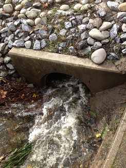 Homes built along Mooney Drive to the east of us were designed in the 1950’s and only had ditches for storm water. Our subdivision was laid out in the 1960’s and included a storm water system. To accommodate the drainage to the east, a large drain inlet accepts the ditch water into the storm water system. This system travels under the street and dumps into Linda Creek on Bronson Rd., between Pendleton Drive and Fuller Drive.