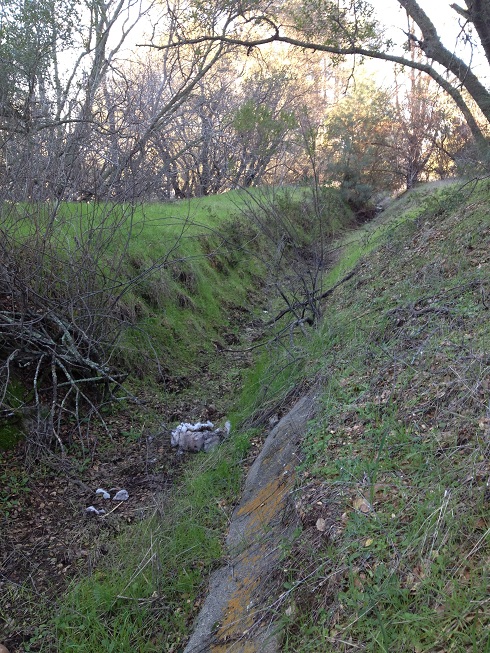 water deliveries stopped sometime in the late 1950’s or early 1960’s when agricultural, ranching and any remaining mining operations gave way to suburban development. However, there is still one little tail of the original North Fork Ditch spur that extends from the outlet of the second siphon and runs a couple hundred yards north stopping at Auburn Folsom Rd. A brief history and other notes on the North Fork Ditch north of Granite Bay can be found in the 2008 LBHA Newsletter. [download id=”39″]