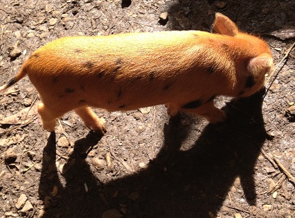 Before we started our hike to the Manoa Falls we encountered a young gentleman with what we thought was a small dog. The dog was actually a piglet from a family of wild pigs he had found the week before. He said “Mango” was hurt and alone when they found her. He and his crew had nursed her back to health and the plan was for a luau, but folks were starting to get attached to the little pig.