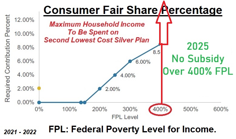 Under the enhanced health insurance subsidies from 2021, households could earn over 400 percent of the federal poverty level (FPL) and still receive a subsidy. Without an extension to the enhanced ACA subsidies, all subsidies cease if the income is over 400 percent. This means that if a family estimated their income at 300 percent of the FPL, but the income on their federal tax return is $1 over the 400 percent threshold, they must repay ALL the subsidies they received during the year.