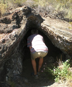 Our first stop was at the Splatter Cone Trail off of Hiway 44/89. While we walked over the stone puzzle made by cooling lava I heard the familiar buzz of a rattle snake. Right after I had said “rattle snake” my son who had stopped in front of his mom was unceremonious push out of the way. I have never seen a 47 year old woman do a 50 yard dash so fast. Obviously the little rattler was taking an afternoon break in between the columnar formation of the lava flow.