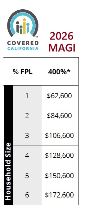 For 2026, individuals and families who earn more than 400 percent of the federal poverty level are ineligible for the ACA Premium Tax Credit subsidy for health insurance. When the individual or family calculates their 2026 federal tax return, if the income is over 400 percent FPL, they must repay all the subsidy they received during the year.